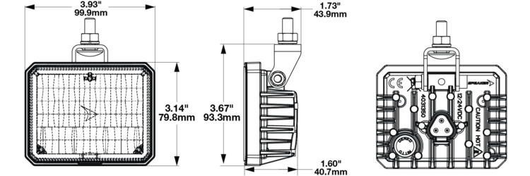 The Model 795 is a dual-function work light: the top half is a white LED work light producing 1980 lumens, ideal for agriculture, construction, mining, and off-road environments to stay productive at any hour, in any weather. The lower half of the work light is an amber direction indicator (DI). The DI meets ECE Regulation 148 – 1, and when activated, overrides the work light. The lower half can be in a hazard/flash mode when on the roadway or can remain constantly on.