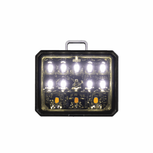 The Model 795 is a dual-function work light: the top half is a white LED work light producing 1980 lumens, ideal for agriculture, construction, mining, and off-road environments to stay productive at any hour, in any weather. The lower half of the work light is an amber direction indicator (DI). The DI meets ECE Regulation 148 – 1, and when activated, overrides the work light. The lower half can be in a hazard/flash mode when on the roadway or can remain constantly on.