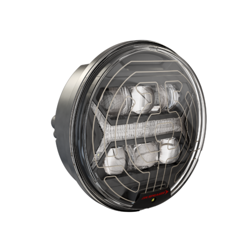A compact, high-performance 5.75″ round LED headlight designed to provide a smooth, well-controlled beam pattern that improves visibility while reducing glare, shadows, and uneven light distribution. Featuring the signature “X” DRL styling, this advanced lighting solution delivers modern appearance and dependable illumination for OEM vehicle platforms and aftermarket lighting upgrades.