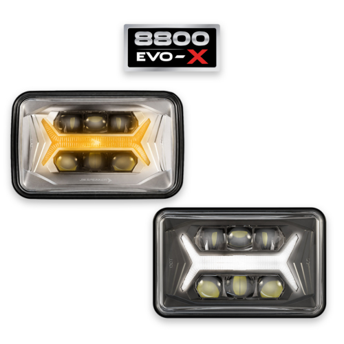 A high-performance LED headlight designed for 4″ x 6″ applications, the 8800 EVO X™ delivers daylight-level performance with modern styling in a compact format used across a wide range of vehicle platforms. Featuring the unmistakable “X” optic, the 8800 EVO X™ combines advanced lighting performance with a distinctive visual signature.